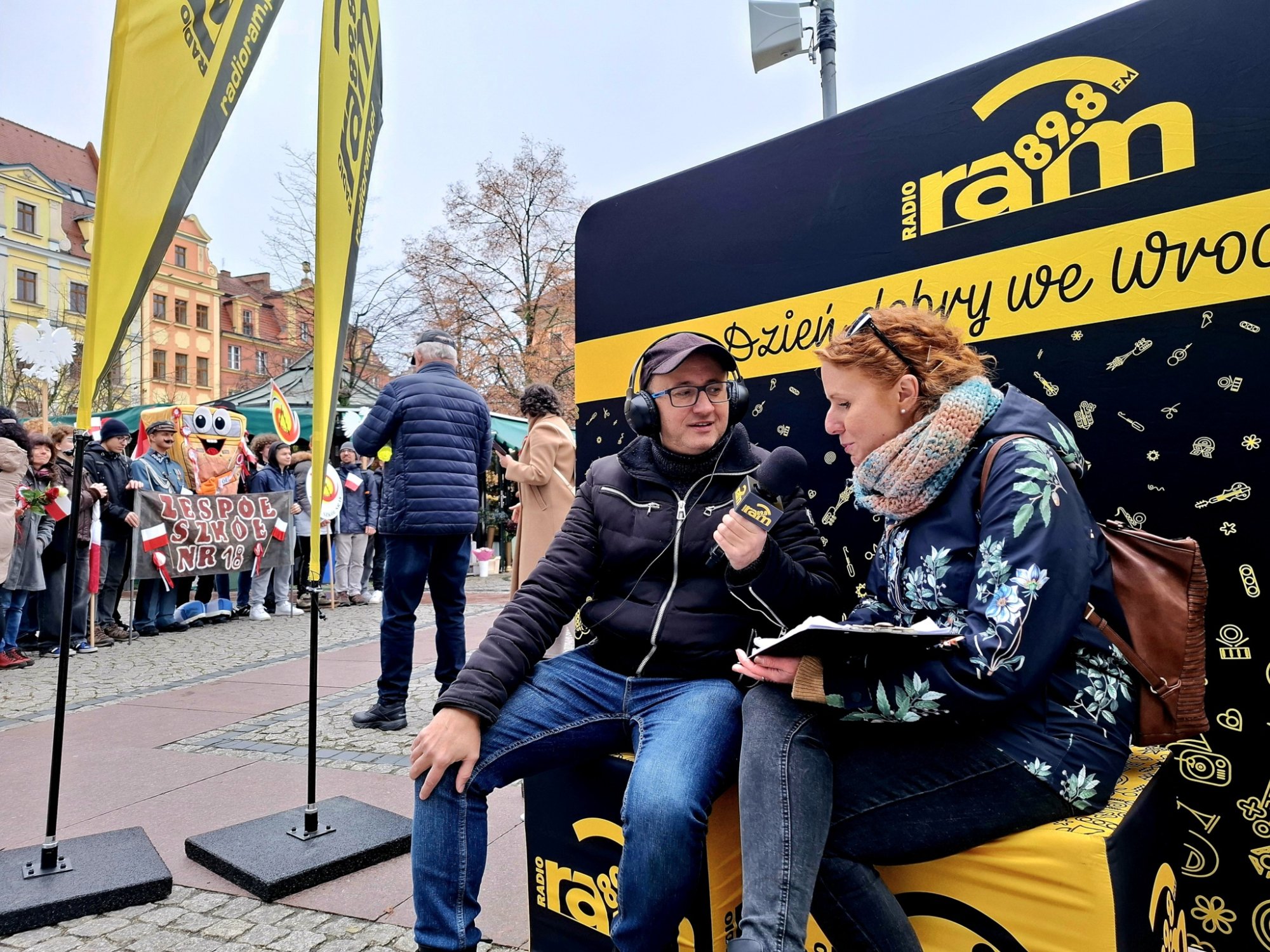 We wtorek 11 listopada Paweł Gołębski relacjonował Radosną Paradę Niepodległości ze studia plenerowego Radia RAM z placu Solnego.
