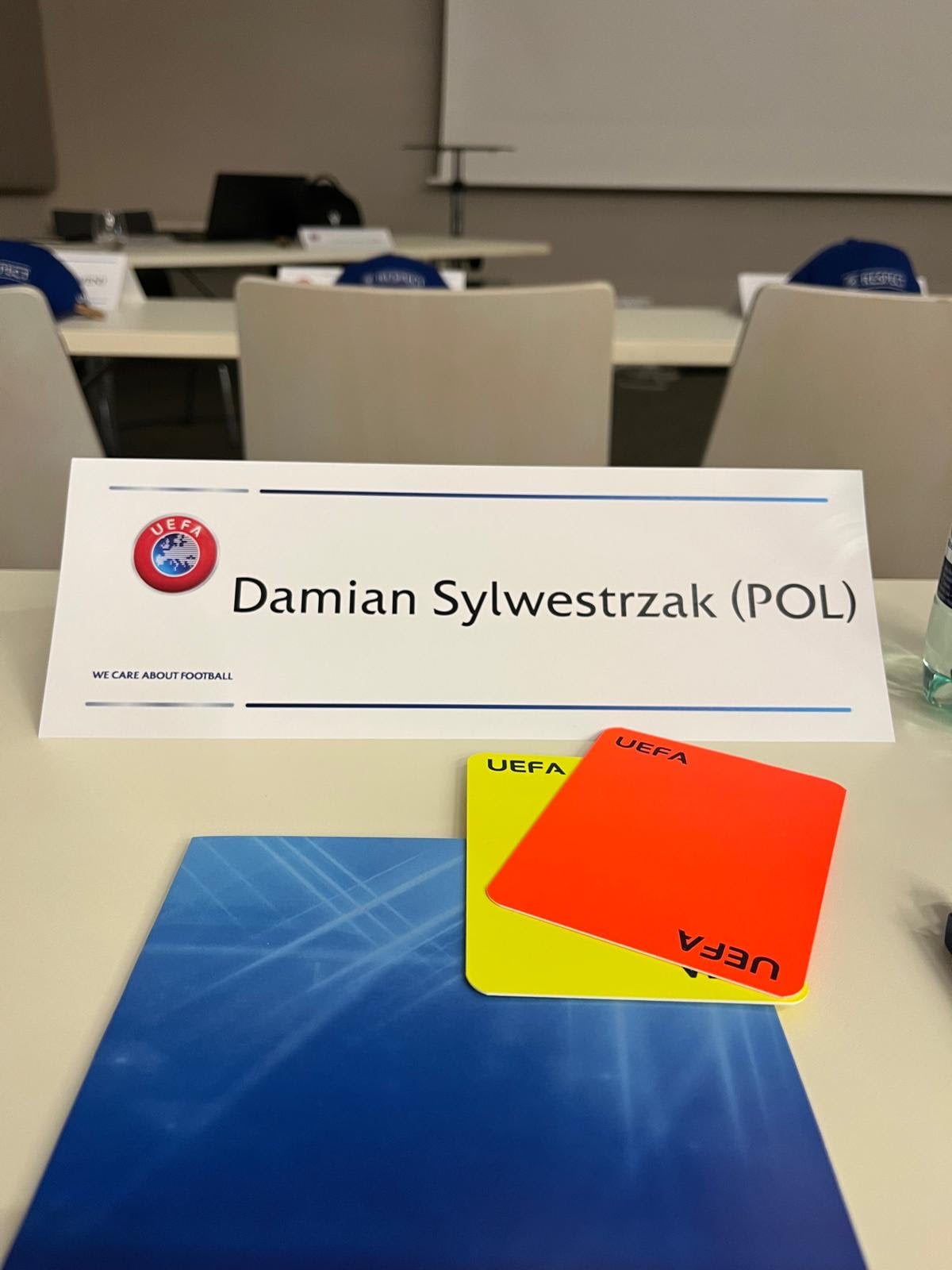 To jest nasz notatnik. Ja osobiście zapisuję tylko numery. Nie interesuje mnie ani minuta, ani przewinienie – to zapisują asystenci, sędzia techniczny i sędzia VAR. Mnie interesuje wyłącznie numer.