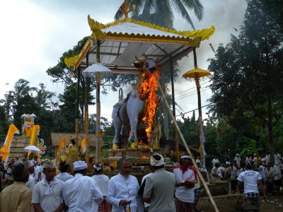 Na Bali ceremonia pogrzebowa jest również widowiskowa. Ma też więcej wspólnego z rytuałami w Indiach i Nepalu.