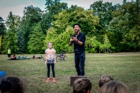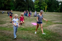 Tradycyjnie nasz czas wypełniły gry i zabawy. Zaczęliśmy od rozgrzewki – skakanek, gumy i podwórkowo-wakacyjnych wspomnień – w nawiązaniu do naszego zeszłorocznego spotkania w Parku Szczytnickim. Na uczestników czekały domowe przysmaki, a na zwycięzców kosze piknikowe. Można je było wygrać w konkursach na antenie Radia RAM, na 89.8 FM.